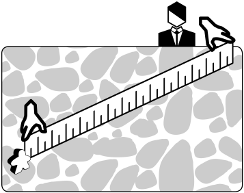 In this Measurement system, there is no grid or other tessellation breaking up the map. Pieces are free to move any amount up to their movement limit, expressed in inches, centimeters, or using a game-supply ruler. This system is typically seen in miniatures games, which are played directly on a tabletop. Because of the analog nature of Measurement, these systems have several unique issues they need to deal with. First, attack, like movement, is also expressed in the Measurement units. The designer needs to decide whether to allow for Measurement at any time to determine the range or only after attacks or moves have been declared. Not allowing premeasurement gives an edge to players that are better at estimating ranges but tends to make for a lighter experience as sophisticated plans and strategies may fall apart because a charge falls a fraction of a centimeter short. Most modern games allow for premeasurement, although this does slow things down (Illustration 10.3). This is compounded by the second issue, that there is always some imprecision in moving and Measurement. These systems require players to communicate about the intent of moves and to act in a reasonable fashion. Finally, unlike Movement Points systems (MOV-04), the measuring can be challenging with different terrain types. Does movement in difficult terrain count as moving “farther” than in other terrains? How are those