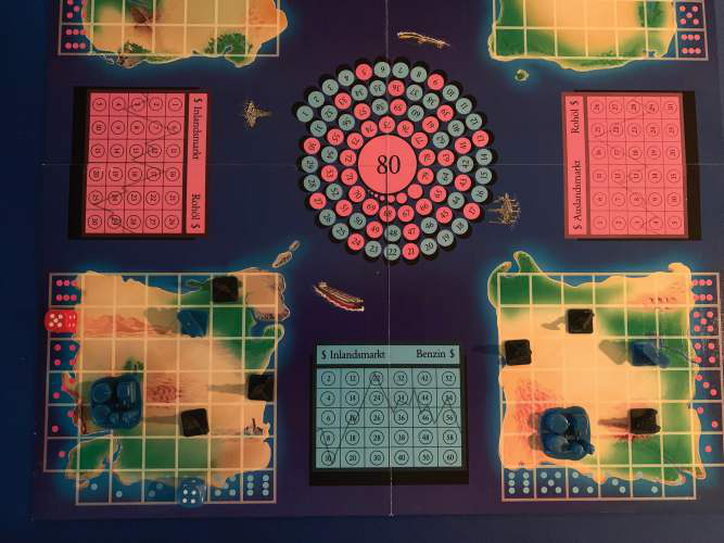 游戏结束时,每个城市都会计分,每个玩家获得的分数等于得分最低的城市的分数(一种最高-最低评分形式——见VIC-20)。玩家与邻居合作,使每个城市尽可能好,但也受到激励,重点改善得分较低的城市。邻居范围有许多积极特征。最重要的是,通过限制玩家需要担心的互动,更容易将游戏扩展到更高的玩家人数。这在《七大奇迹》中很明显,它可以舒适地容纳七名玩家。如果你可能从任何其他玩家那里获得资源或攻击他们,那会让游戏慢很多,因为玩家有更多的选项要考虑。限制范围限制了需要考虑的可能性数量,并向玩家展示了更小的决策空间。同样,《双城之间》的邻居范围允许协商和玩家讨论,但以受控的方式进行。这使得不喜欢公开谈判游戏的玩家更舒服,也减少了谈判所需的时间——这一直是此类游戏的潜在问题(见ECO-18谈判)。这种机制的缺点是,特别是在玩家人数较多时,玩家通常不需要与其他玩家互动,即使是社交上的,尤其是坐在桌子对面的玩家,他们在位置上离他们最远。玩家可能会玩一整场游戏,却不知道那些玩家做得如何,他们的策略是什么,或者他们是好玩家还是坏玩家。由于他们只与直接邻居互动,这就是他们关注的对象。然后,当游戏结束时,他们会发现其他人做得如何,这往往是个惊喜。远距离的玩家即使有影响,也只是间接影响。虽然从模拟的角度或从允许游戏平滑扩展的角度来看这可能有意义,但这确实会带来某种类型的社交体验,这种体验更加碎片化,并且本身不会创造一个群体的“故事”。邻居范围还有许多其他表现形式。一种是标准的卡牌轮抽(CAR-06卡牌轮抽),玩家从手牌中选择一张牌,然后将剩下的传给左边的人。你最直接地影响你的“下游”邻居,因为根据游戏的不同,你也许能够判断人们在收集什么,并可能阻止他们获得一套或组合。《Crude: The Oil Game》中有一个独特的实现。每个玩家在6x6的网格上建造设施。在玩家回合开始时,他们掷两个骰子,一个激活网格中的一行,另一个激活一列。
